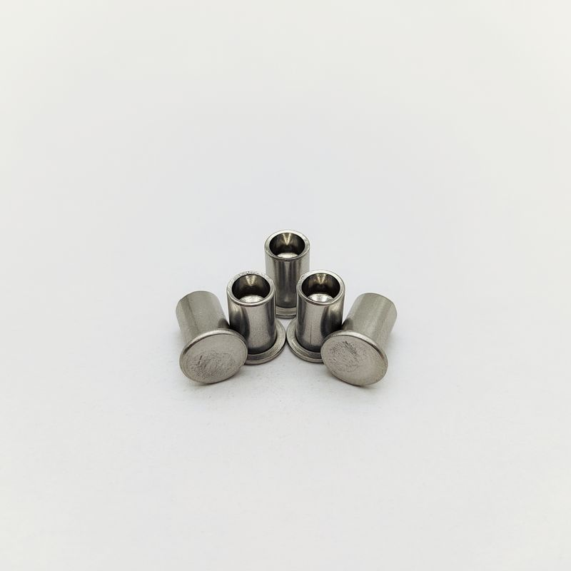 संक्षारण प्रतिरोधी अर्ध-ट्यूब्युलर रिवेट्स 100 डिग्री फ्लैट हेड के साथ। 304 स्टेनलेस स्टील, खोखले गहराई 1.5 डी। आकारः Ø3-6 मिमी। निष्क्रिय खत्म। इलेक्ट्रॉनिक्स, मशीनरी और मोटर वाहन अनुप्रयोगों के लिए।अनुकूलित लंबाई उपलब्ध.